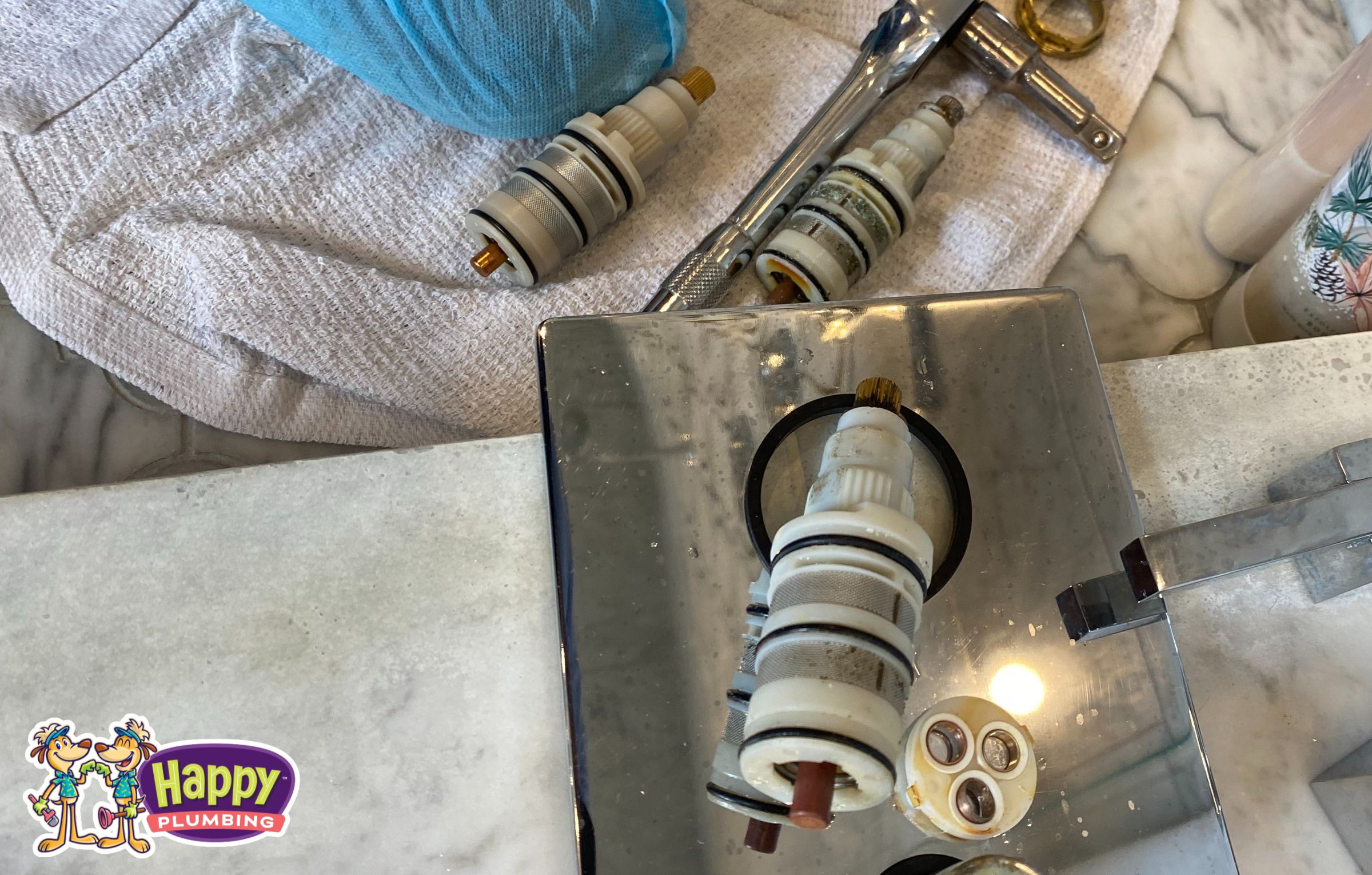 The client called Happy Plumbing to report inconsistent water temperature and flow issues in the master shower. After confirming the diagnosis, the customer proceeded with our high-performance Quality Cartridge upgrade. We began by identifying and sourcing the correct replacement cartridge and diverter, ensuring compatibility with the existing valve body. Once the parts were secured, we shut off the main water supply to the residence, removed the defective cartridge and diverter, and installed the new components with precision. The new setup restored the proper mixing of hot and cold water, eliminated leakage, and improved diverter functionality for seamless switching between shower functions.